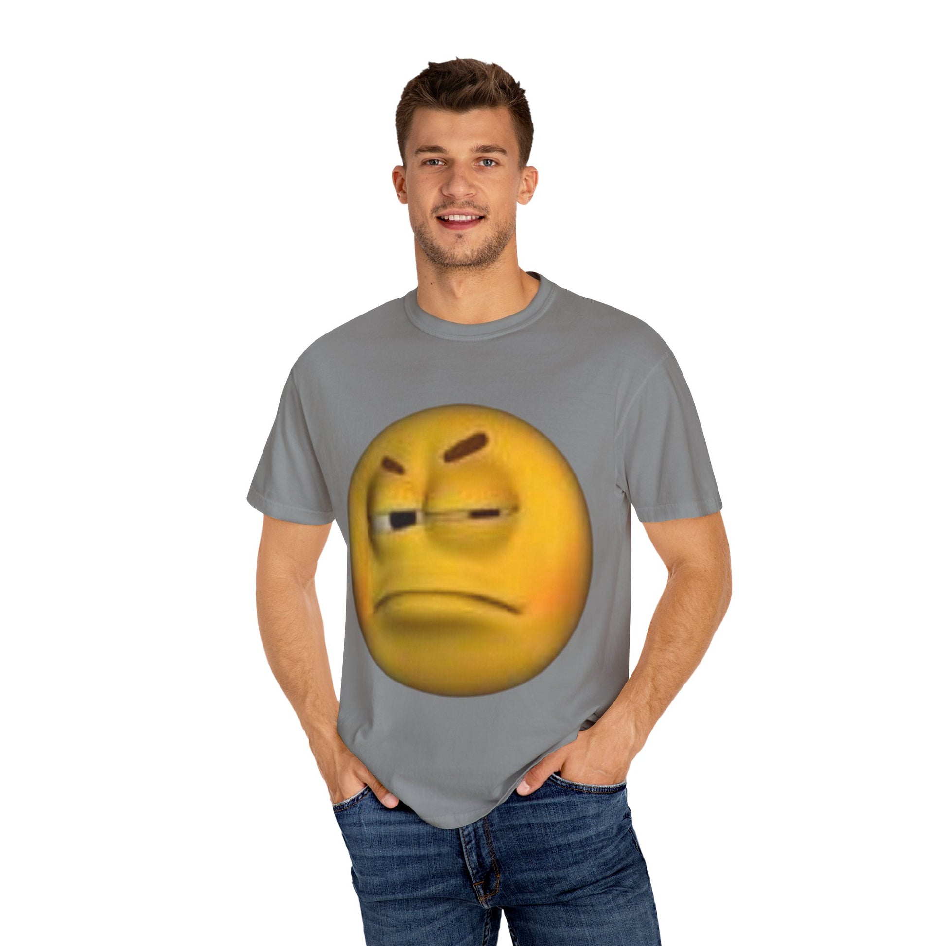 A Unisex Garment-Dyed T-Shirt with the phrase 'You disgust me' printed on it, giving off a bold and edgy vibe. Perfect for those who enjoy sarcastic and rebellious humor. Ideal for casual wear or to make a statement in social gatherings. Relevant for Halloween, April Fool's Day, or everyday wear for those with a dark sense of humor.