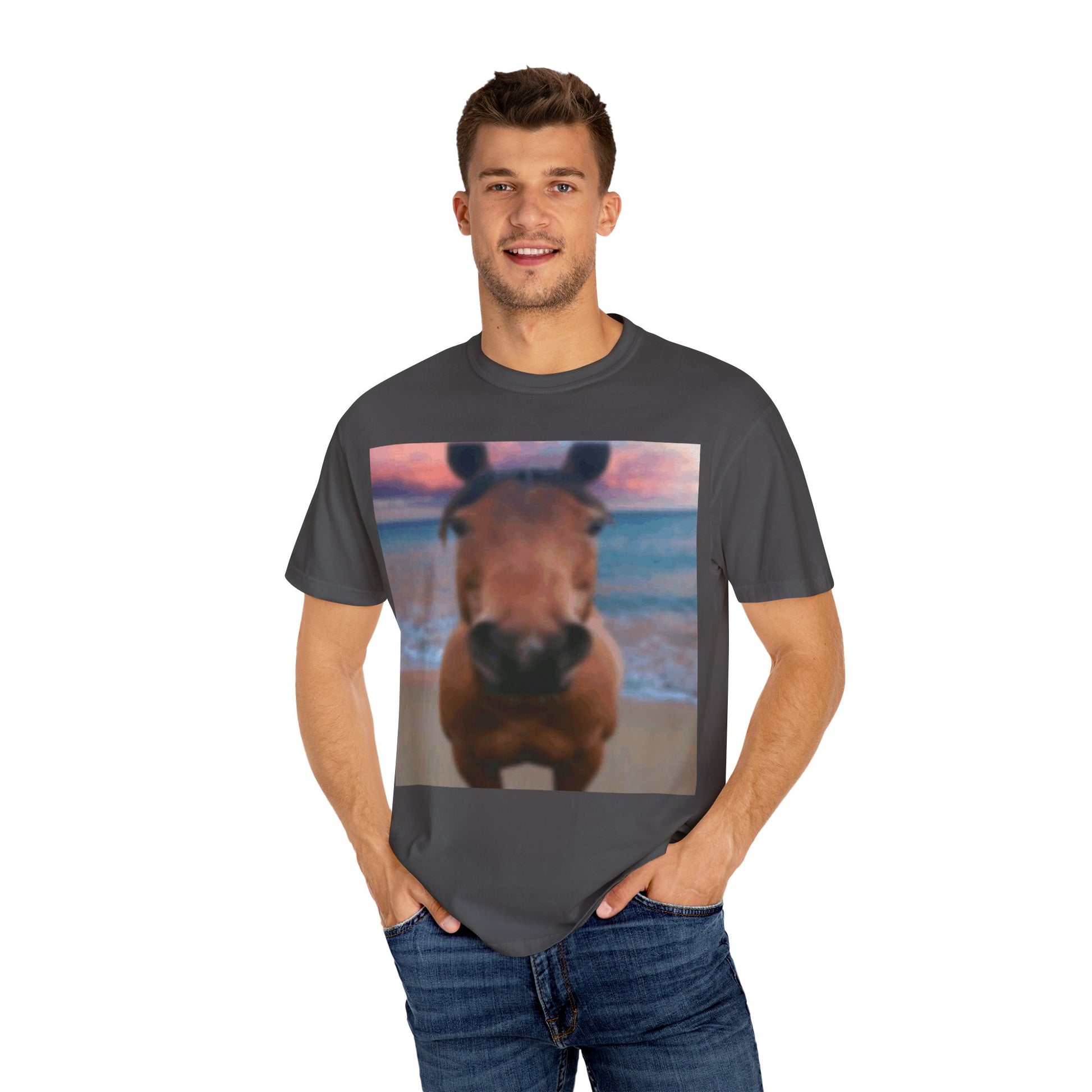 A horse-themed T-shirt that exudes a rustic and equestrian vibe, perfect for horse lovers and enthusiasts. This garment-dyed tee is soft, comfortable, and available in sizes S to 4XL, making it suitable for anyone looking for a relaxed fit shirt. Ideal for casual wear or as a cozy layer during outdoor activities.