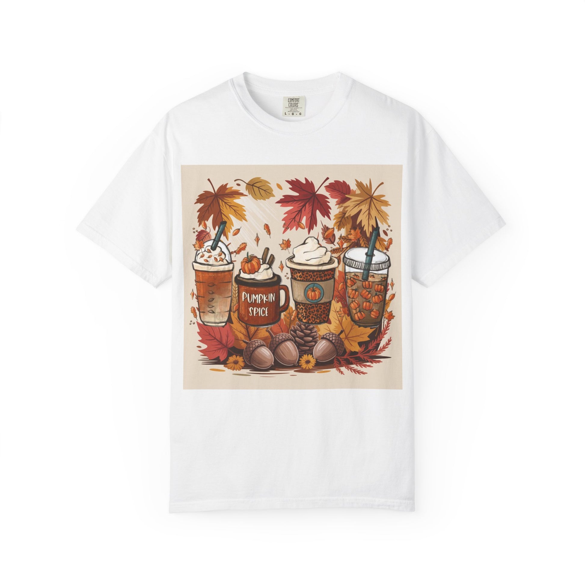 This unisex garment-dyed t-shirt is perfect for the fall season with its pumpkin spice drinks design. It gives off a cozy and autumnal vibe, making it a great addition to any fall wardrobe. Ideal for those who love fall and enjoy pumpkin spice drinks, this t-shirt is perfect for casual wear or as a gift for a friend or family member. Relevant for fall, Halloween, Thanksgiving, and any autumn celebrations.